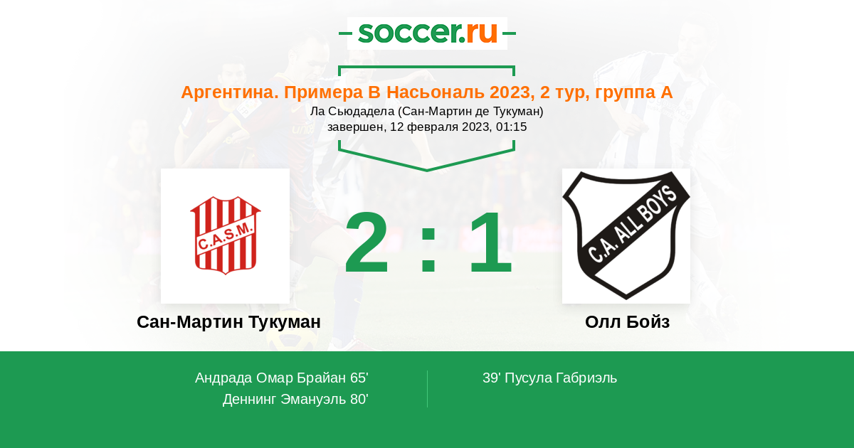 | Сан-Мартин Тукуман | Олл Бойз | |
