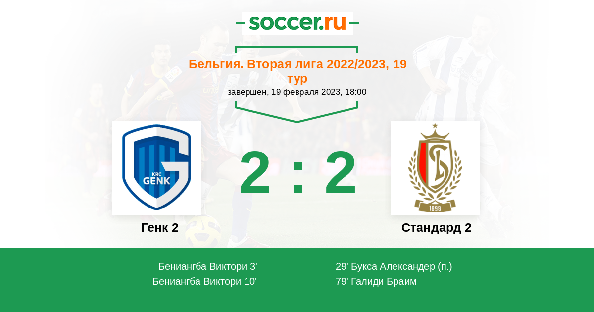 | Генк 2 | 5:6 | 2:1 | 3:5 |