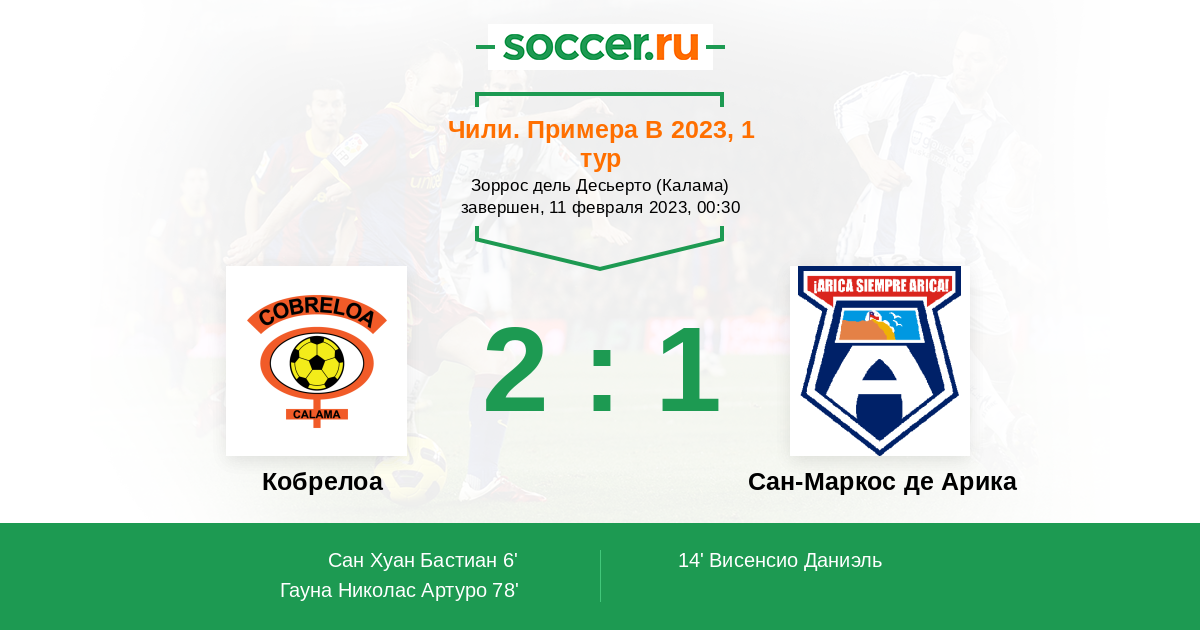 | Сан-Маркос де Арика | 22:24 | 13:6 | 9:18 |