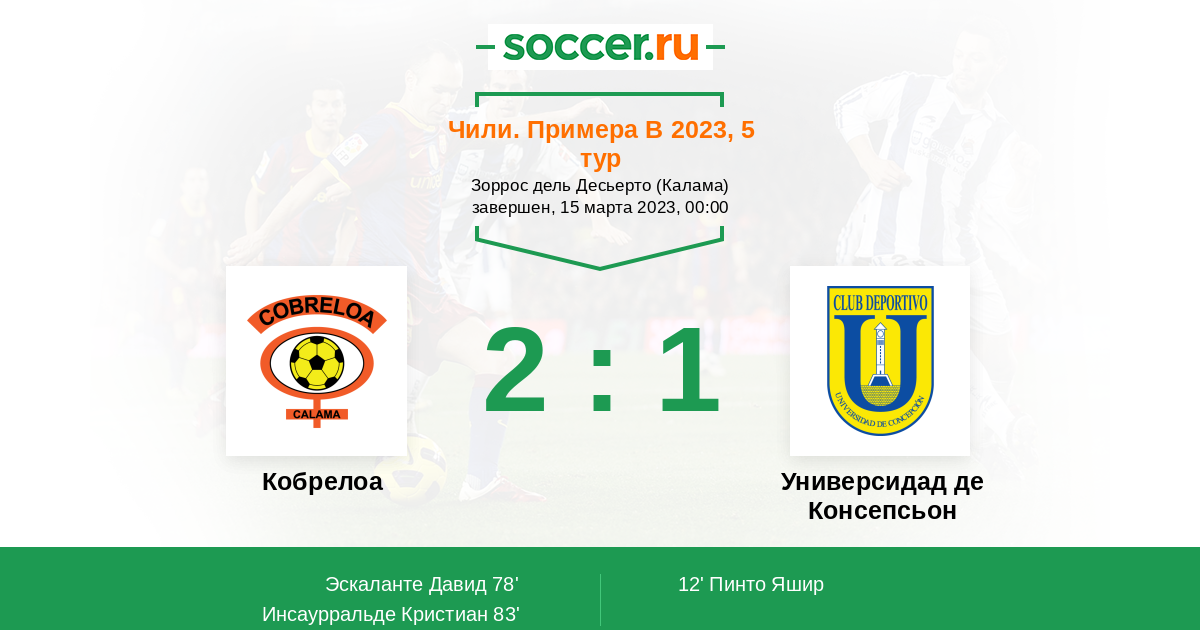 | Универсидад де Консепсьон | 45:39 | 26:15 | 19:24 |