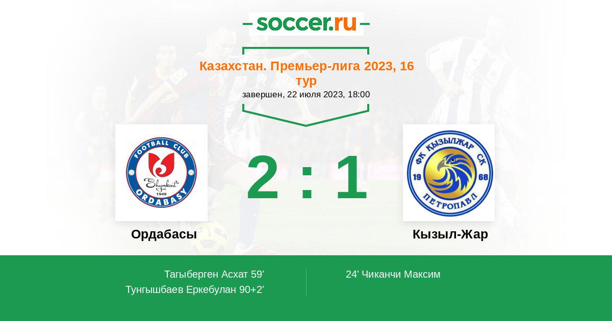 | Кызыл-Жар | 17:15 | 9:8 | 8:7 |