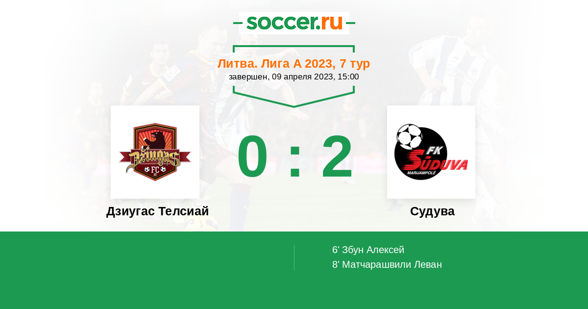 | Литва. Лига А | 19 | 6 | 6 | 7 |