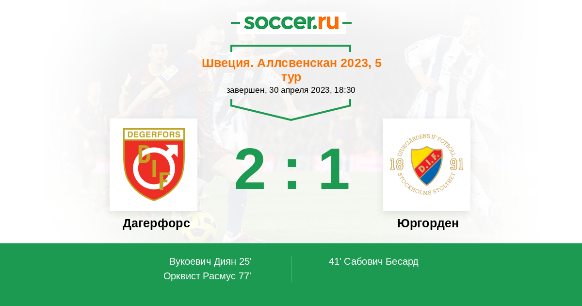 | Юргорден | 39:18 | 32:9 | 7:9 |