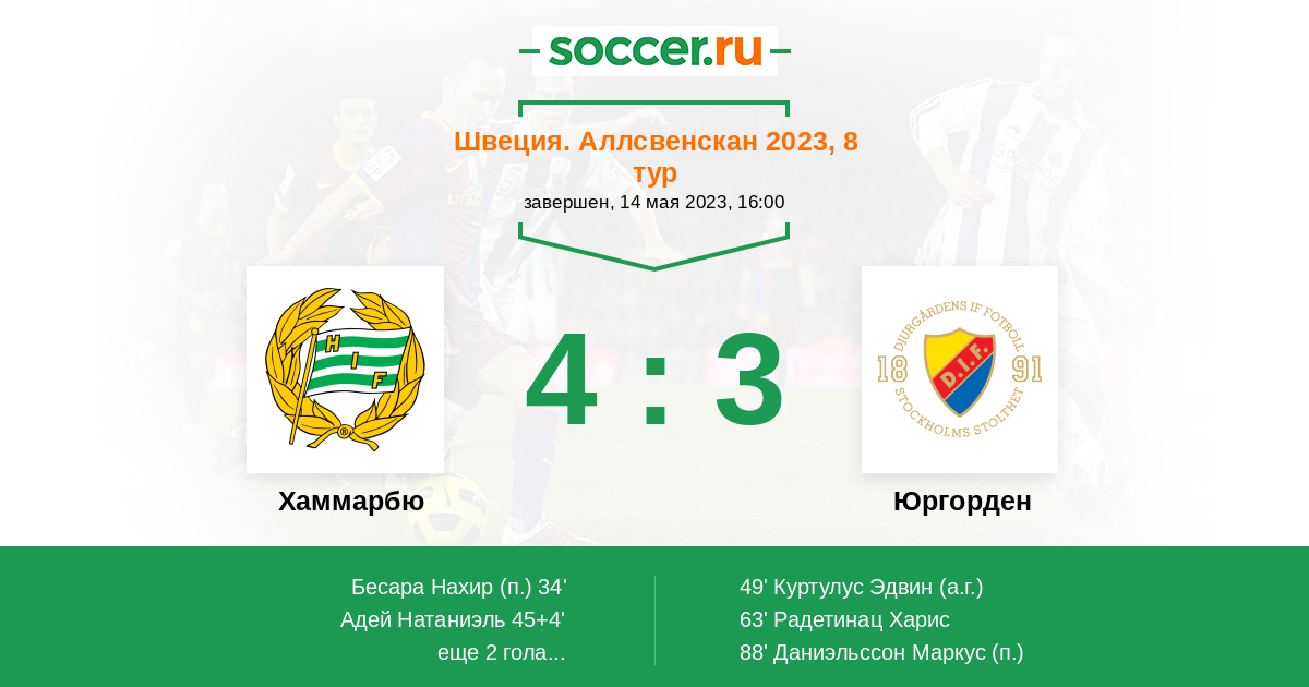 | Швеция. Аллсвенскан | 43 | 19 | 15 | 9 |