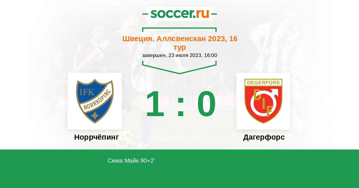 | Норрчёпинг | 36:21 | 20:8 | 16:13 |