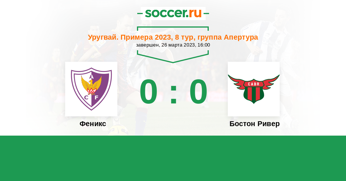 | Уругвай. Примера A | 19 | 6 | 7 | 6 |