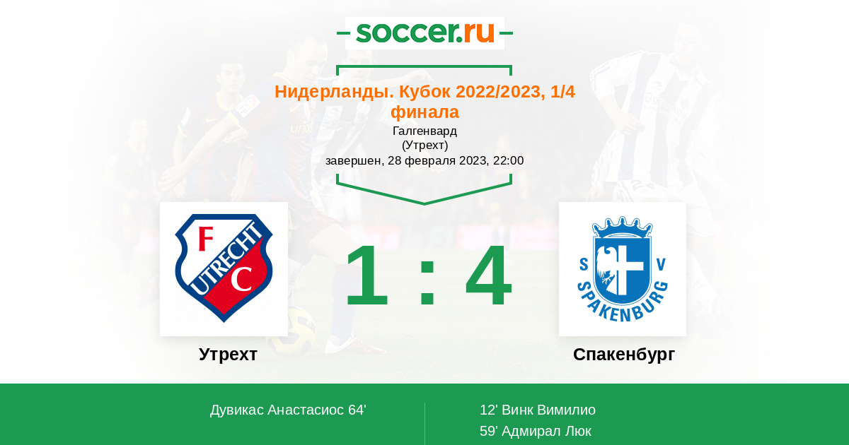 | Утрехт | 3:0 | 0:0 | 3:0 |