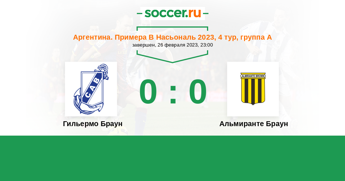 | Альмиранте Браун | 3:5 | 1:1 | 2:4 |