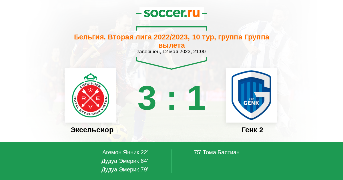 | Генк 2 | 2:2 | 1:2 | 1:0 |
