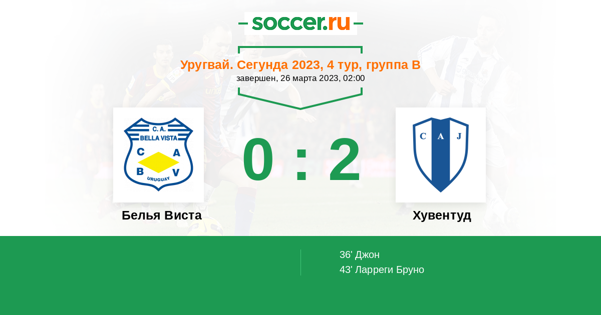 | Хувентуд | 5:1 | 3:0 | 2:1 |