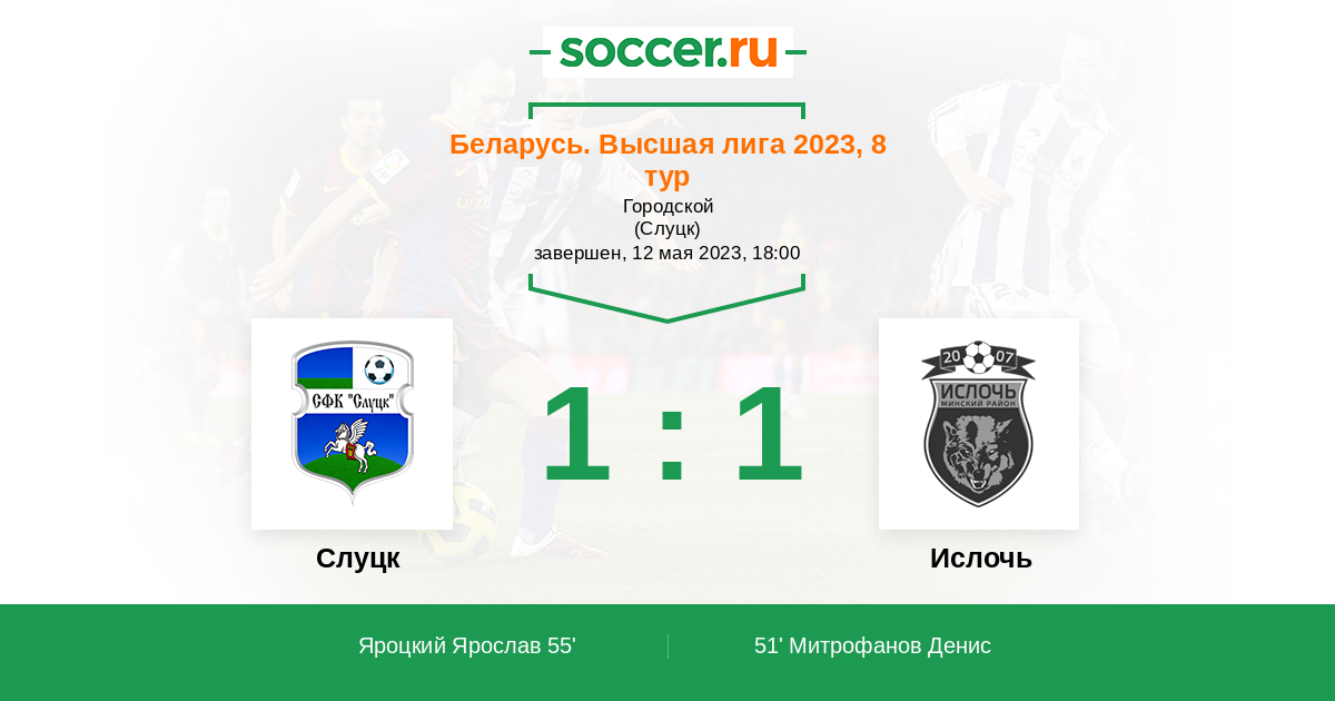 | Слуцк | 35:39 | 19:22 | 16:17 |