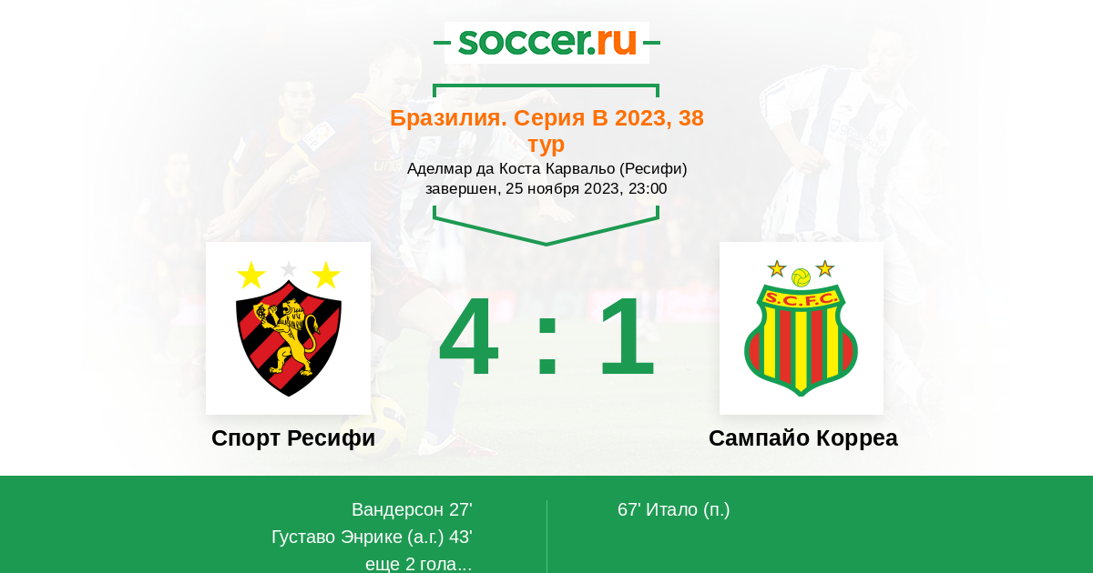 | Спорт Ресифи | 8:8 | 5:3 | 3:5 |