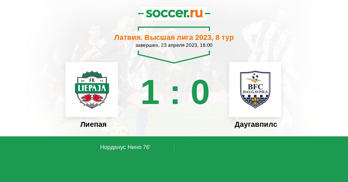 | Лиепая | 72:33 | 34:18 | 38:15 |