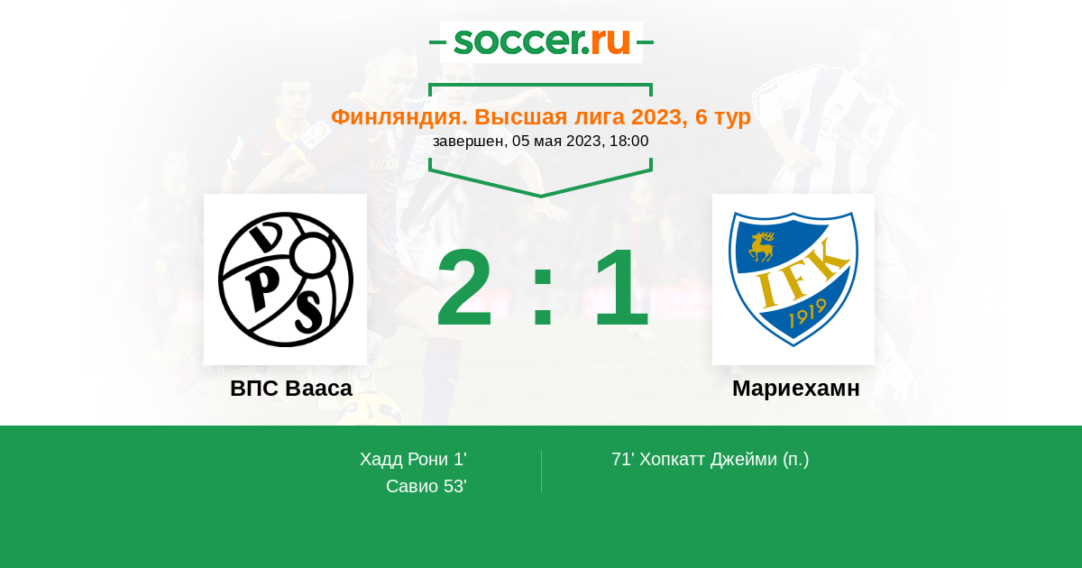 | ВПС Вааса | 53:57 | 23:32 | 30:25 |