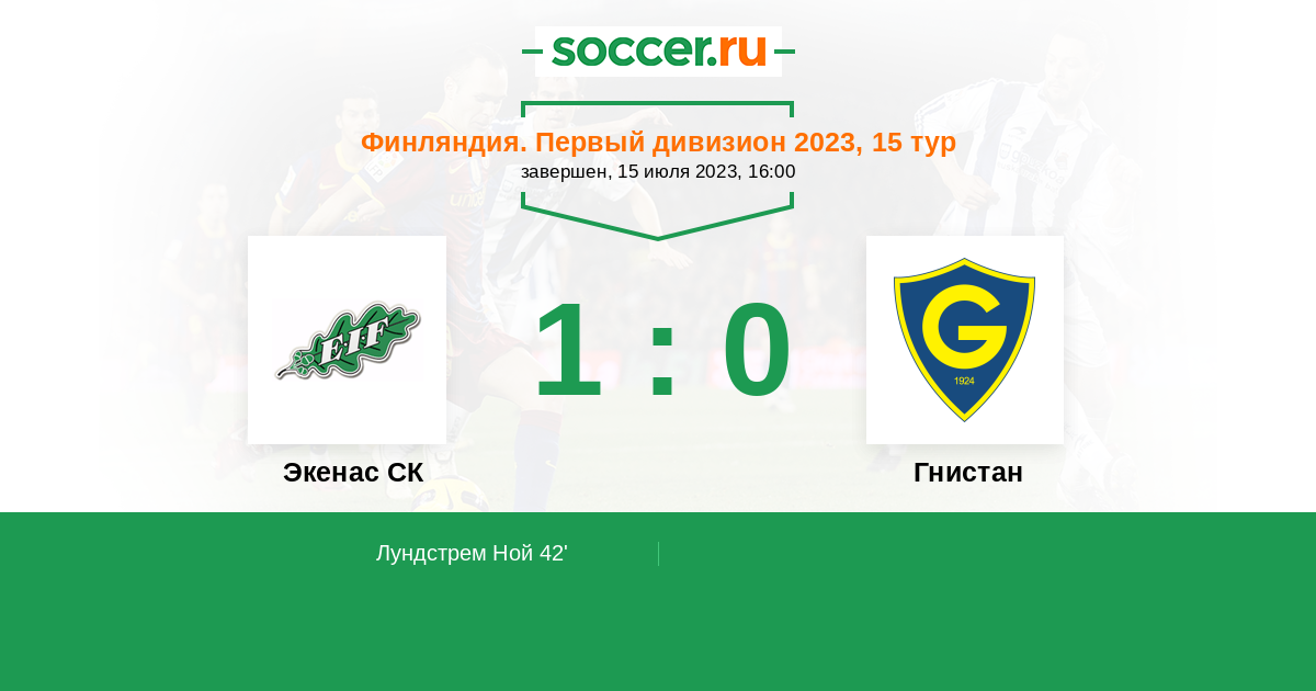 | Экенас СК | 22:12 | 13:7 | 9:5 |