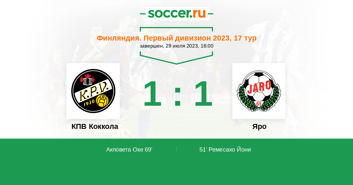 | КПВ Коккола | 9:21 | 2:7 | 7:14 |