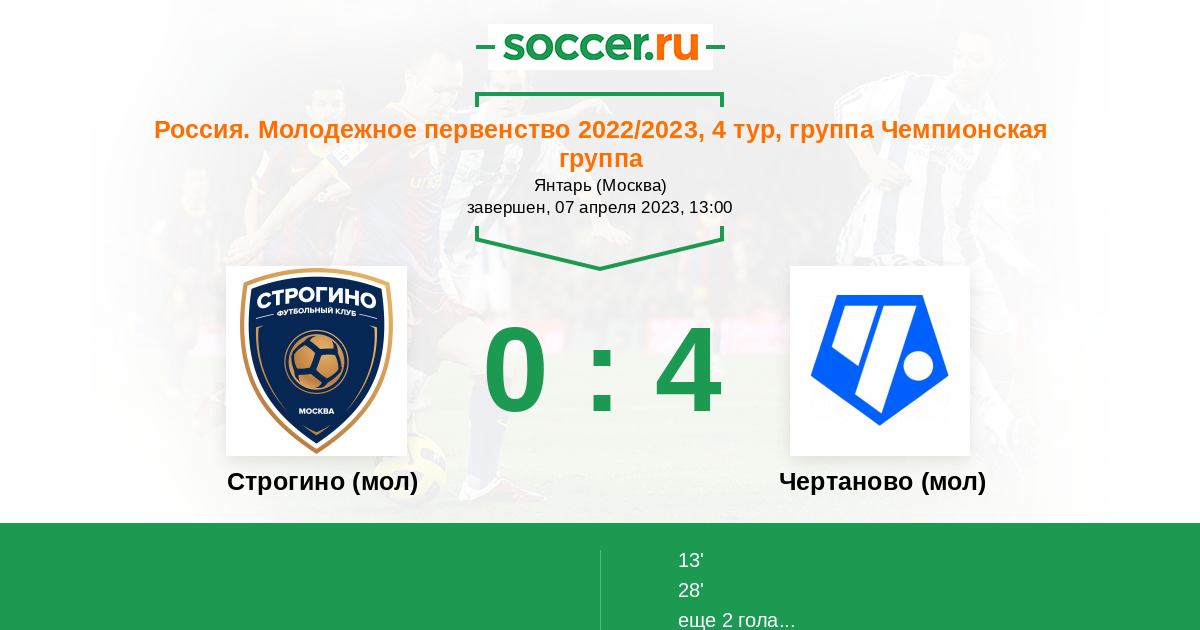 | Чертаново (мол) | 2:3 | 2:3 | 0:0 |