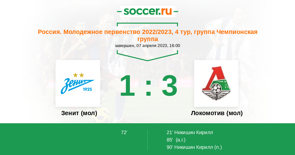 | Зенит (мол) | Локомотив (мол) | |