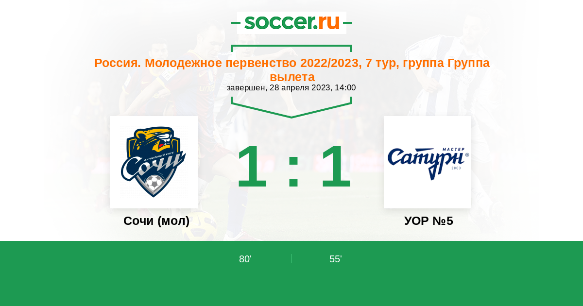 | Сочи (мол) | 12:3 | 2:1 | 10:2 |