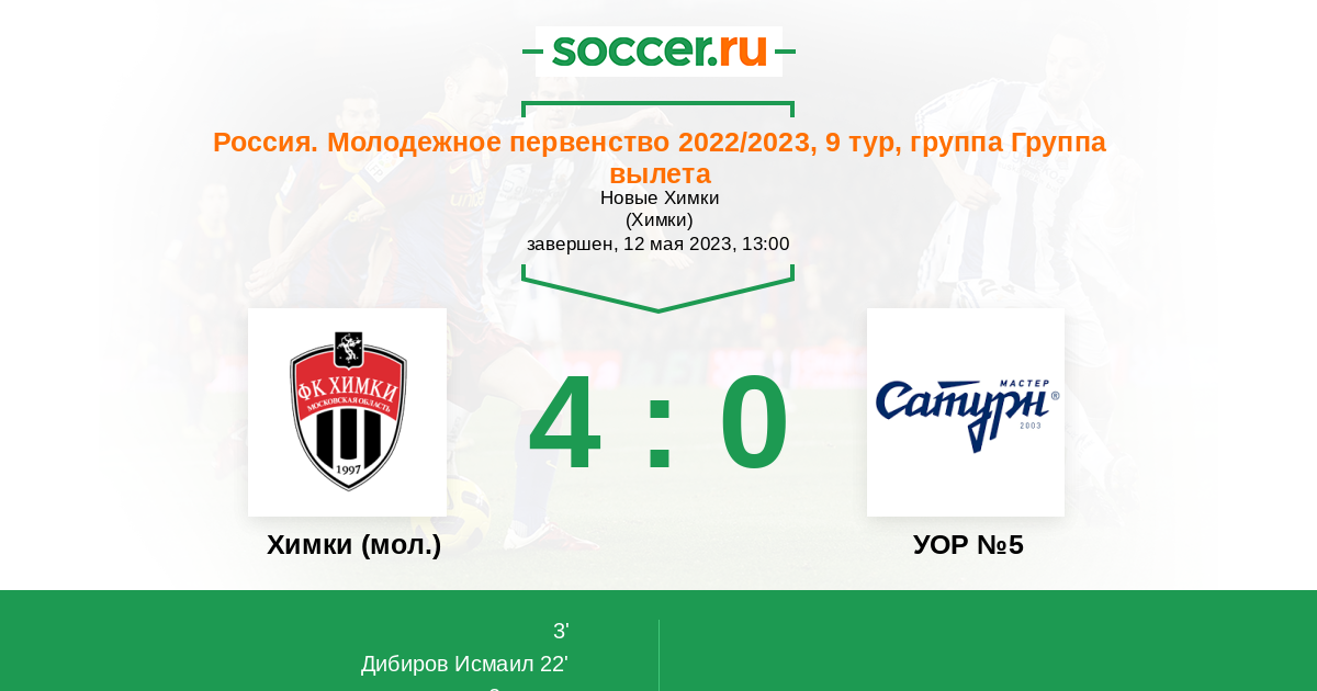 | Химки (мол.) | 7:9 | 4:3 | 3:6 |