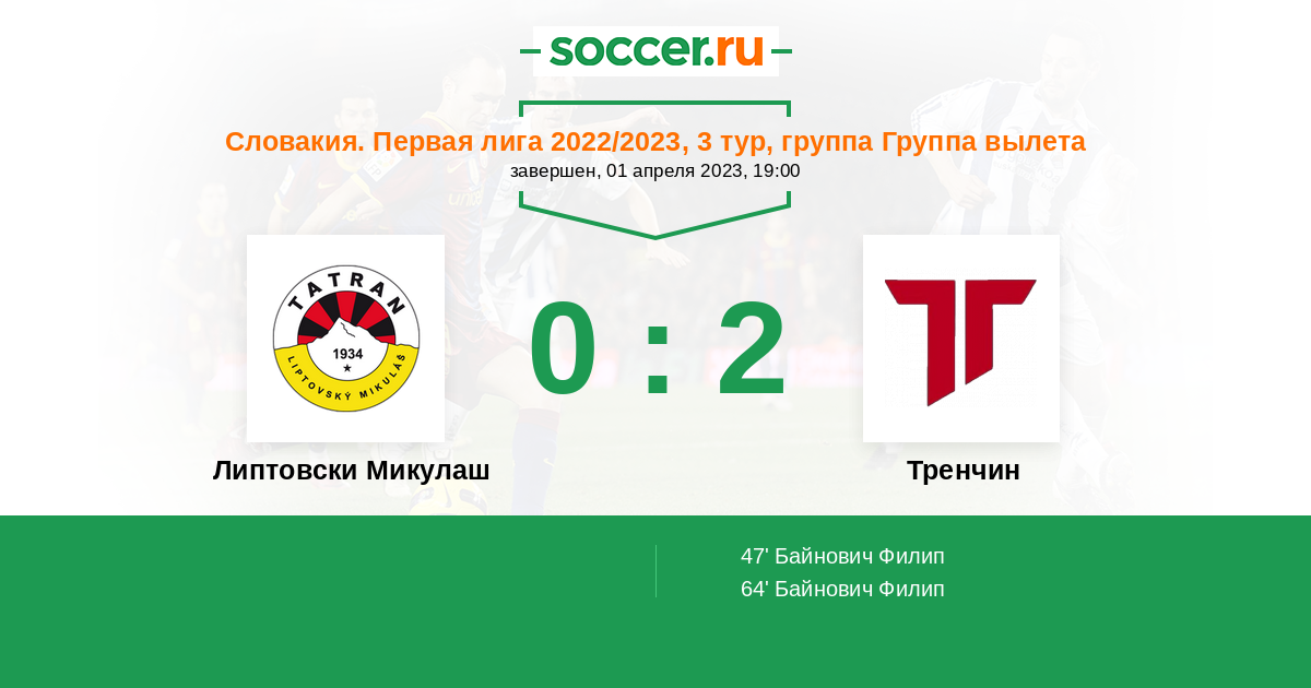 | Тренчин | 27:17 | 17:12 | 10:5 |