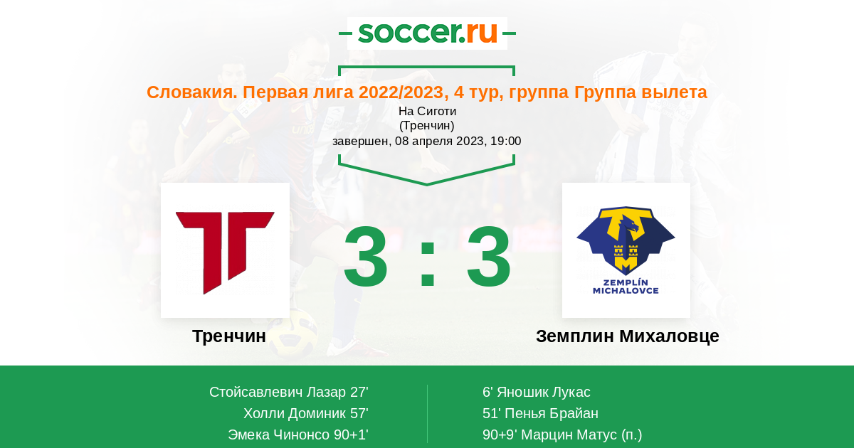 | Земплин Михаловце | 47:77 | 27:29 | 20:48 |
