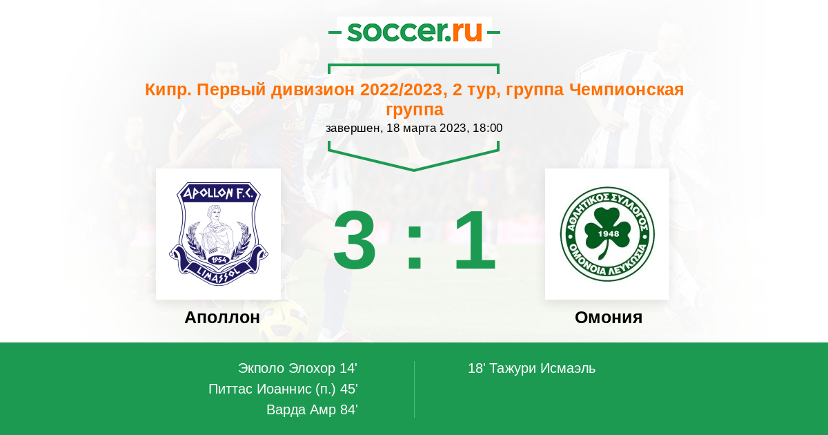 | Аполлон | Омония | |