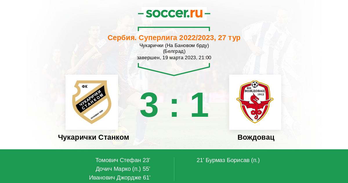 | Сербия. Первая лига | 2 | 1 | 0 | 1 |