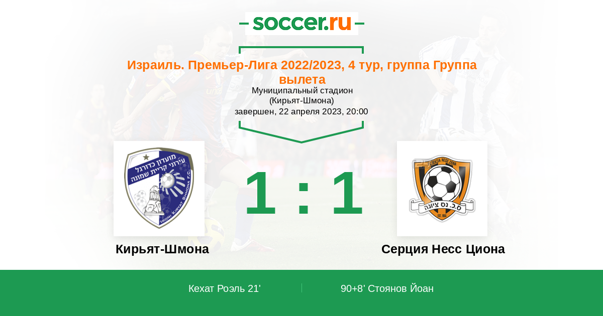 | Кирьят-Шмона | 10:7 | 6:3 | 4:4 |
