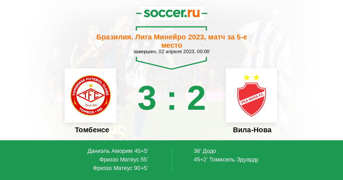 | Томбенсе | 23:14 | 11:5 | 12:9 |