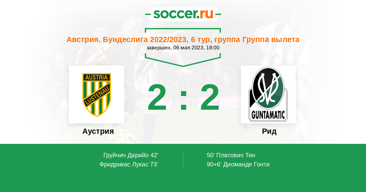 | Австрия. Первая Лига | 18 | 4 | 8 | 6 |
