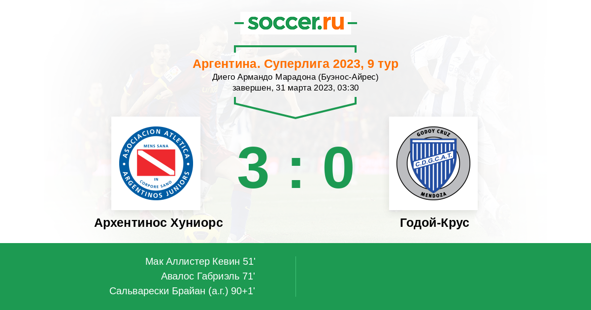 | Архентинос Хуниорс | Годой-Крус | |