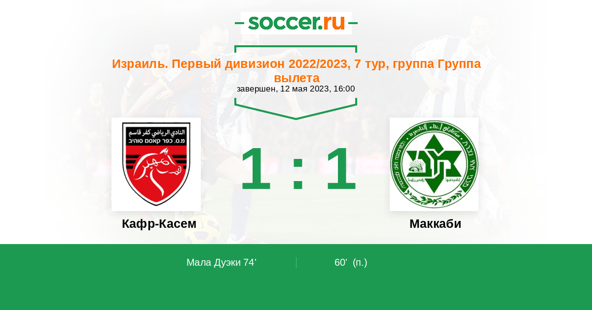 | Кафр-Касем | 18:8 | 11:4 | 7:4 |