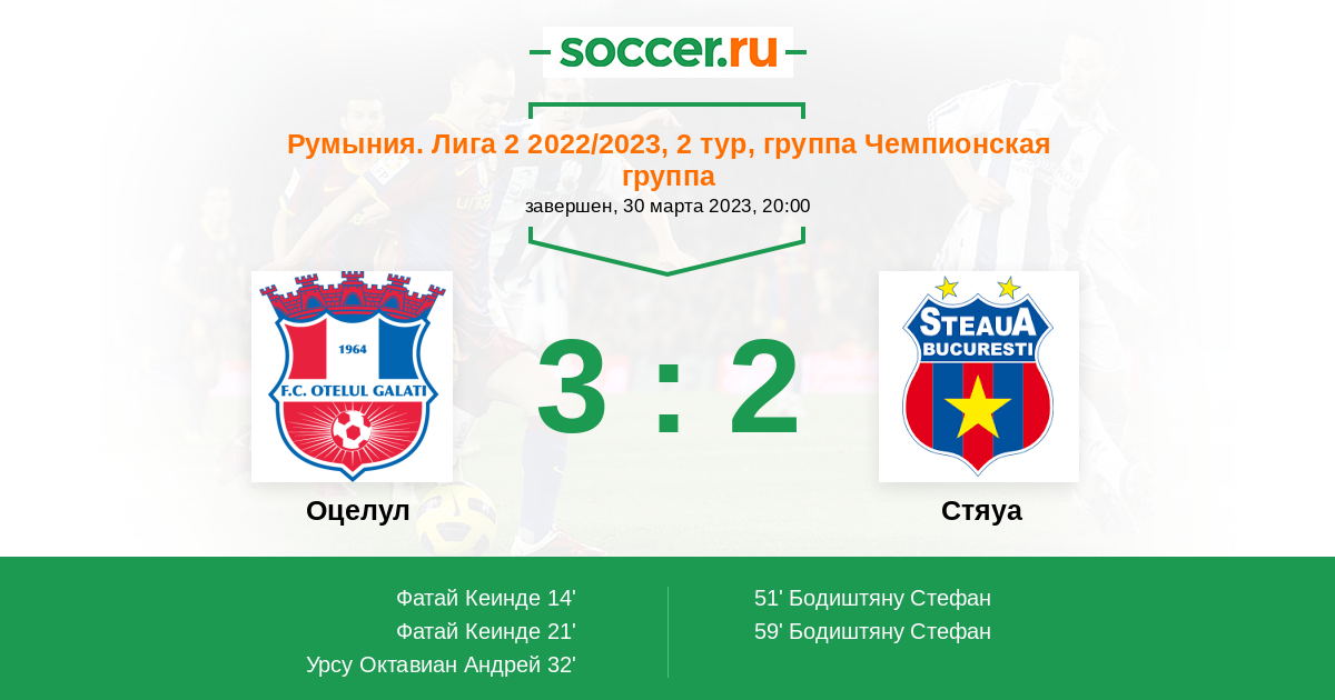 | Стяуа | 2:1 | 2:1 | 0:0 |
