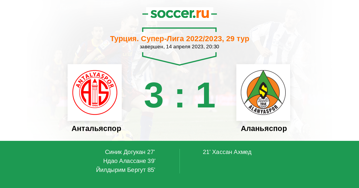 | Антальяспор | 29:32 | 16:12 | 13:20 |
