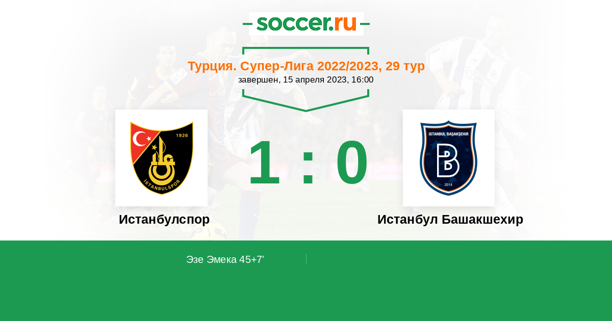 | Истанбул Башакшехир | 6:0 | 4:0 | 2:0 |
