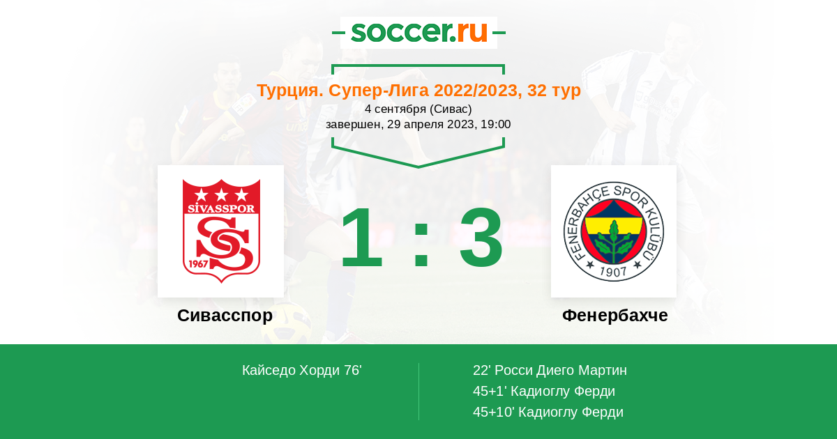 | Сивасспор | 48:93 | 27:37 | 21:56 |