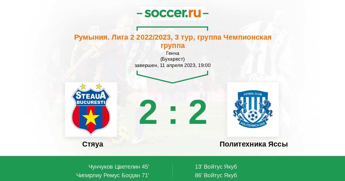 Стяуа 2:1 Политехника Яссы