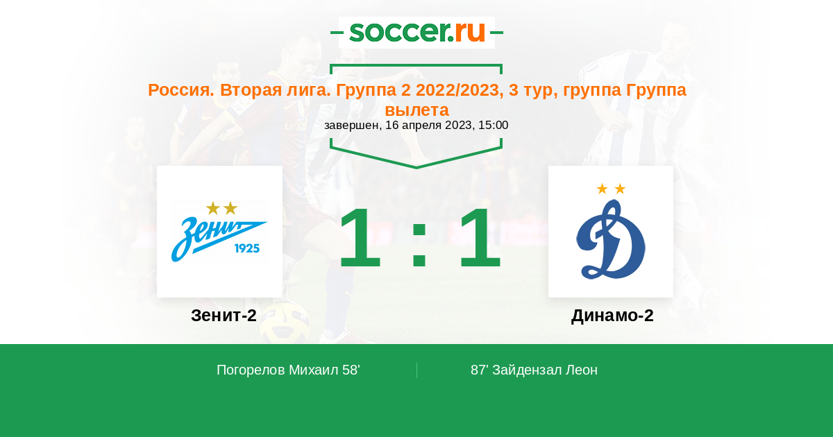 | Зенит-2 | 11:7 | 4:2 | 7:5 |