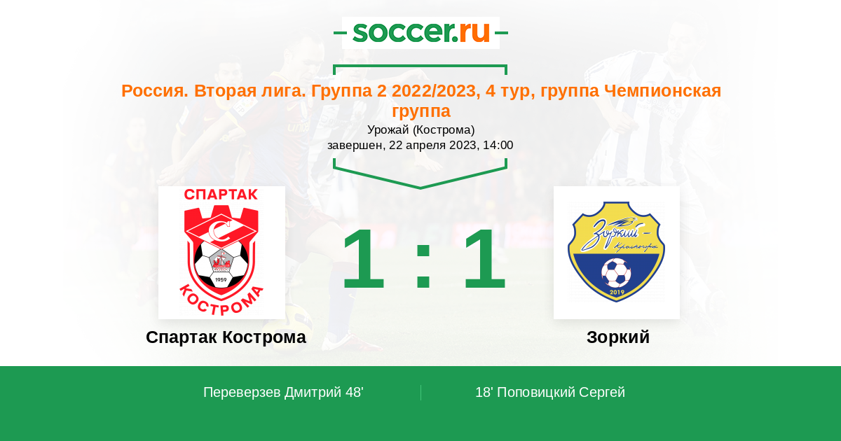 | Зоркий | 1:3 | 1:3 | 0:0 |