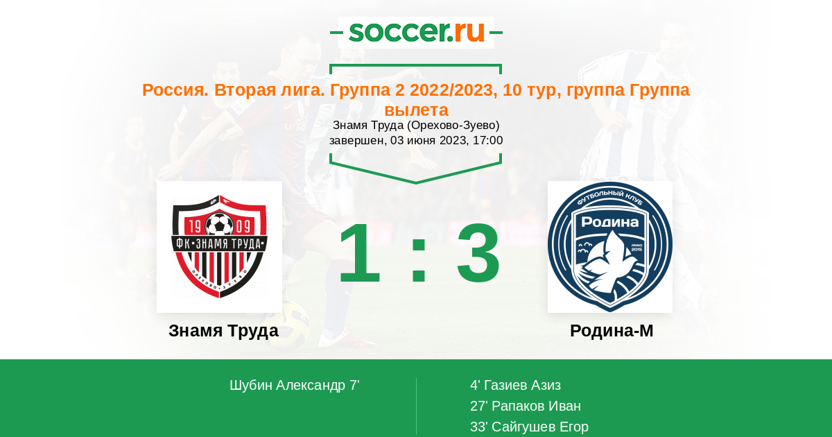 | Знамя Труда | 16:7 | 11:5 | 5:2 |