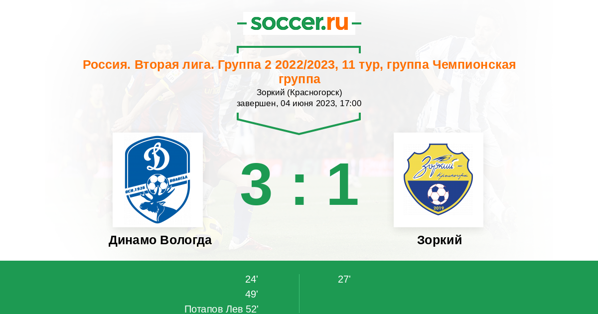 | Зоркий | 4:1 | 4:1 | 0:0 |