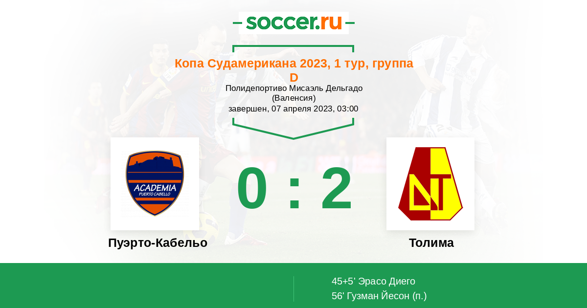 | Пуэрто-Кабельо | 1:3 | 0:0 | 1:3 |