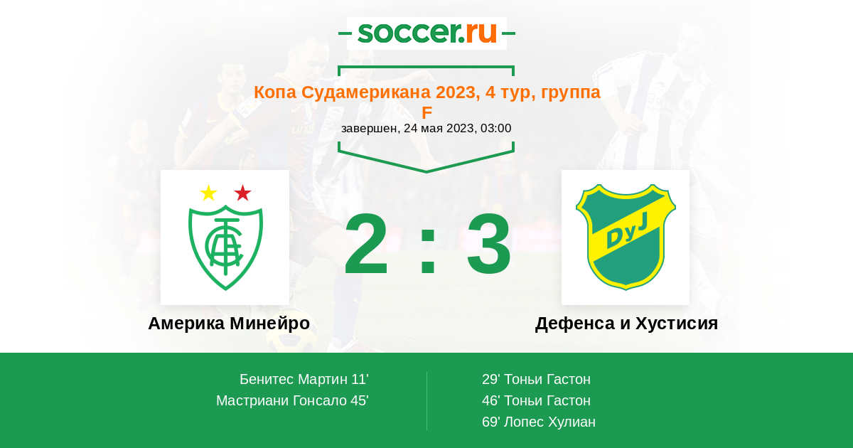 | Америка Минейро | Дефенса и Хустисия | |