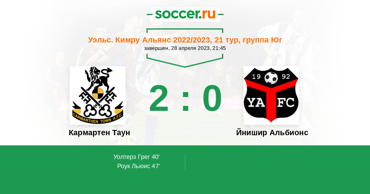 | Кармартен Таун | 7:1 | 0:0 | 7:1 |