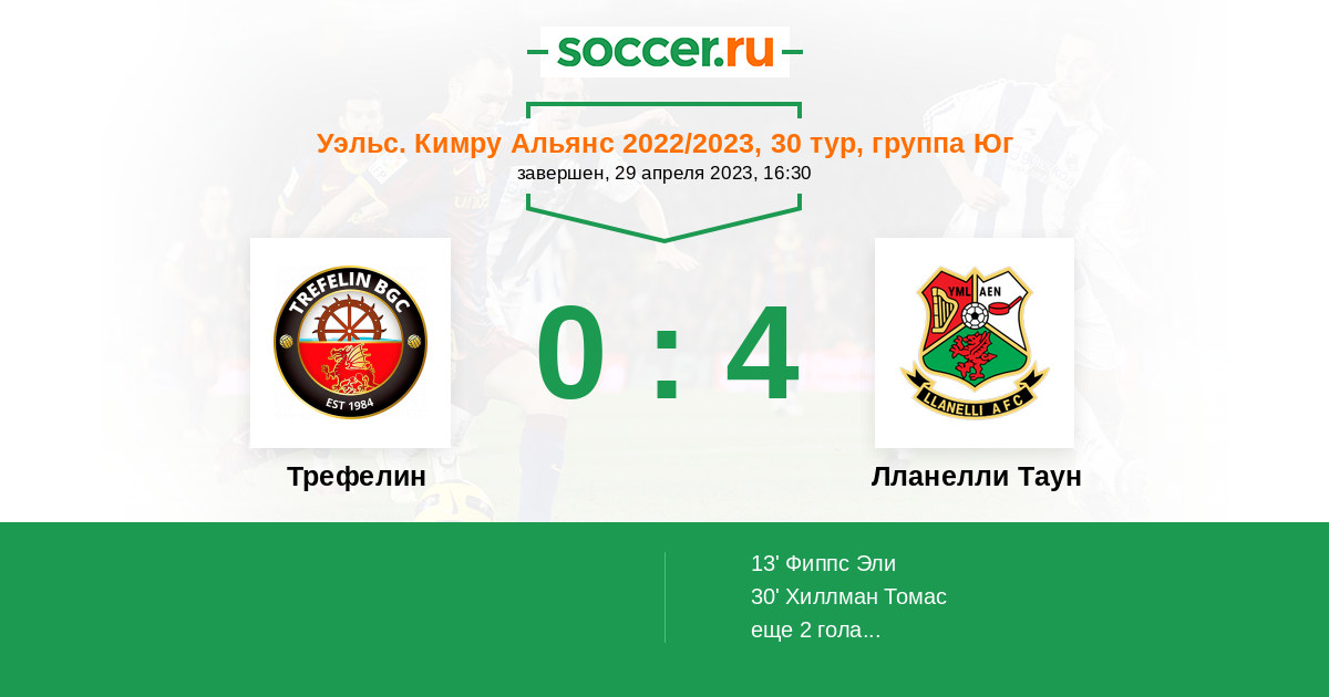 | Лланелли Таун | 12:12 | 8:9 | 4:3 |
