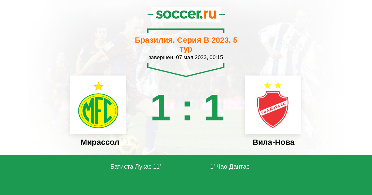 | Мирассол | 1:3 | 1:0 | 0:3 |