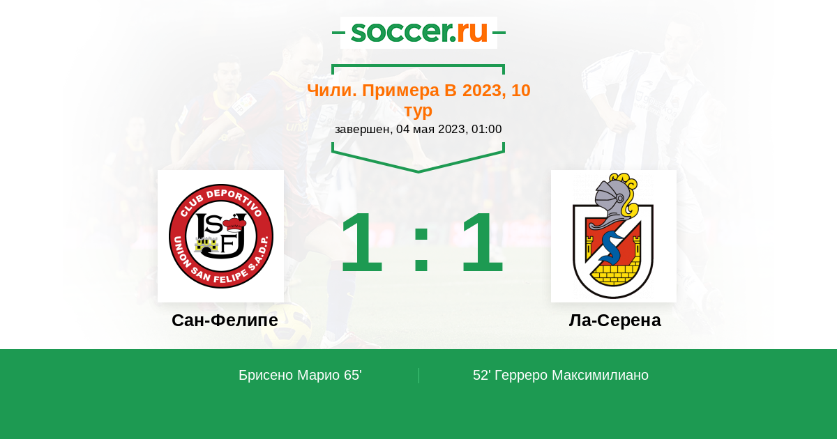| Ла-Серена | 33:31 | 27:12 | 6:19 |