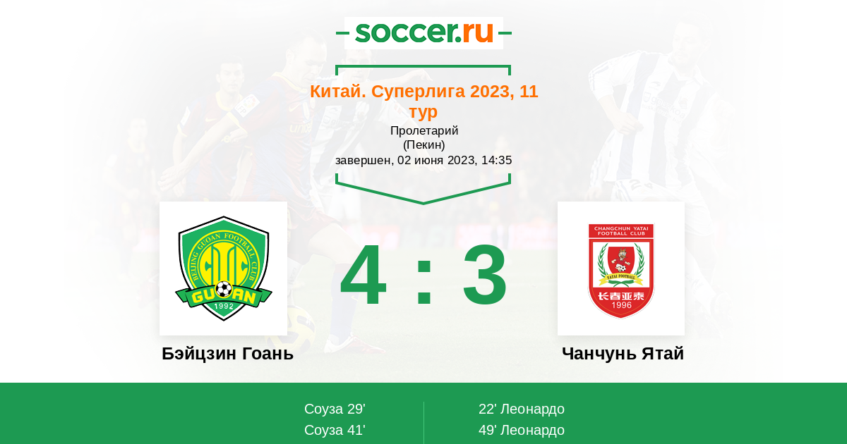 | Бэйцзин Гоань | Чанчунь Ятай | |