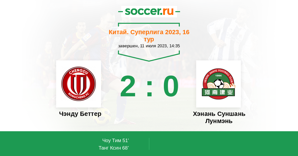 | Чэнду Беттер | Хэнань Суншань Лунмэнь | |